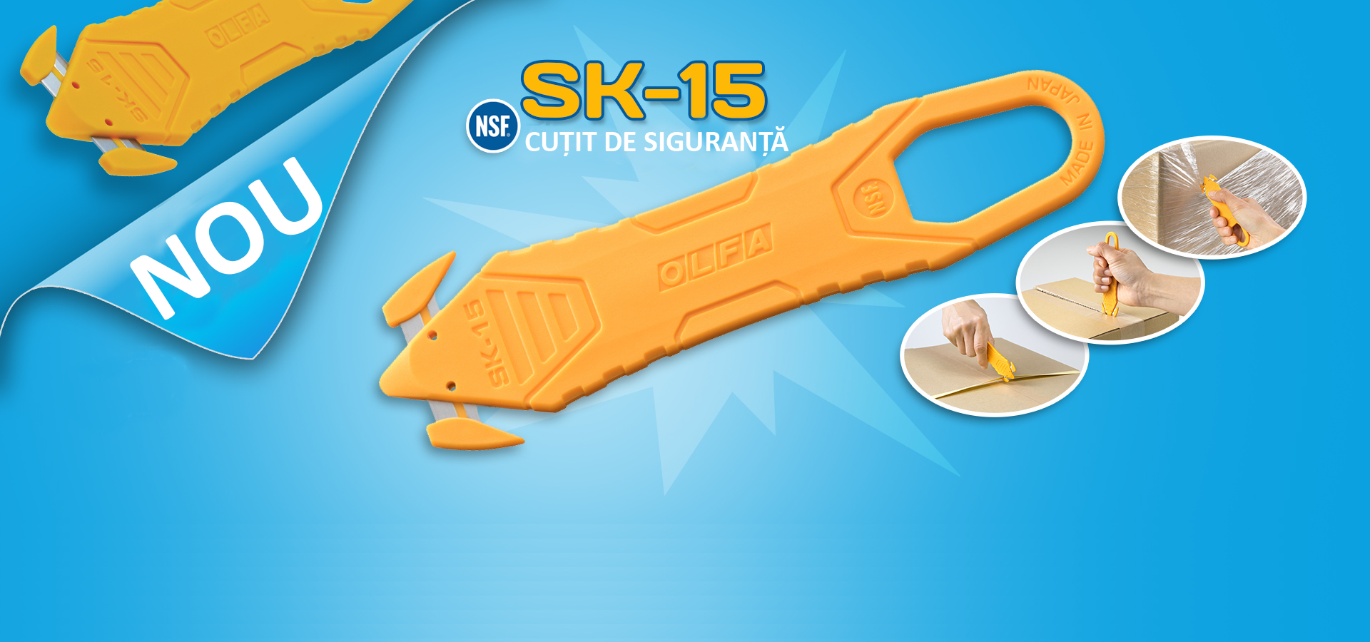 Cuțitul SK-15 este un tăietor cu un design sigur, care împiedică degetele să atingă lama. Acum și în culoarea albastru și alb.
